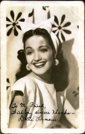 Autograph reads: To My Friend, With my sincere thanks - Dottie Lamour